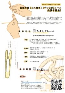 本研修は、織物の製造に携わる方を対象にたて継ぎ方法について主に実技で学ぶ研修ですので、この機会に是非受講ください。