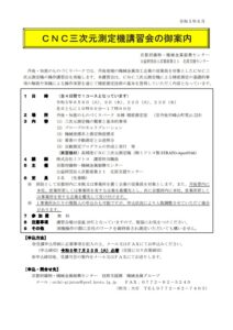 丹後・知恵のものづくりパークでは、丹後地域の機械金属加工企業の従業員を対象としたCNC三次元測定機の操作講習会を実施します。本講習会は、CNC三次元測定機による精密測定の基礎的事項の解説や実機による操作実習を通じて精密測定技術の基本を習得していただく内容となっています。