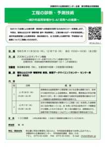 工程の診断・予測技術 ~統計的品質管理からAI活用への進展~(新分野進出支援講座)のご案内