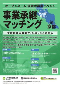 お知らせ一覧をみる>オープンネーム 後継者募集イベント Real Matching in 京都のご案内