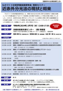 『ものづくり分析評価技術研究会』は、現場で活きる分光分析に関する系統的かつ高度な知識とノウハウを兼ね備えた“ものづくり技術者人材の育成”を目的として令和元年度に発足いたしました。このたび、近赤外分光法に関するトップランナーによる現状と将来に関する基調講演のほか先端的な装置・ソフトウェアの開発に取り組む企業からのショートプレゼンテーションを内容とする特別セミナーを開催いたします。参加費無料。