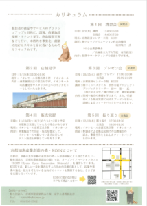 参加者の商品やサービスのブラッシュアップを目的に、講習、商業施設視察・テナント見学、商品販売実習などを行い、本格的な事業化・創業に向けたスキルを身に着けるためのカリキュラムを行います。