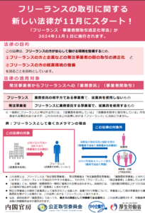 「フリーランス・事業者間取引適正化等法」が2024年11月1日に施行されます。