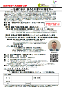 お知らせ一覧をみる>「老舗に学ぶ 強みと知恵の引継ぎ方セミナー」を開催します!