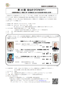 第40回は「撥液表面加工・質感工学・光電融合における光技術の現在と応用」をテーマに開催します。