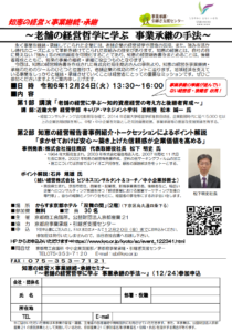 お知らせ一覧をみる>「老舗の経営哲学に学ぶ 事業承継の手法」セミナーを開催します!